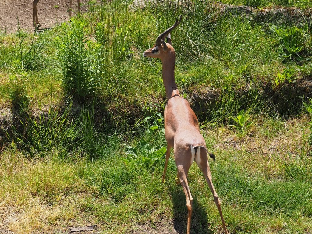 Male southern gerenuk (Litocranius walleri) stanced up supervising his ladies