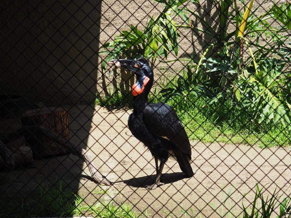 Abyssinian ground hornbill (Bucorvus abyssinicus) showing off its rat
