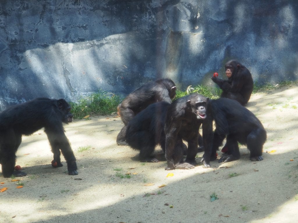 Chimps (Pan troglodytes) in a tomato-centric Renaissance composition